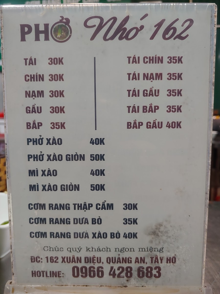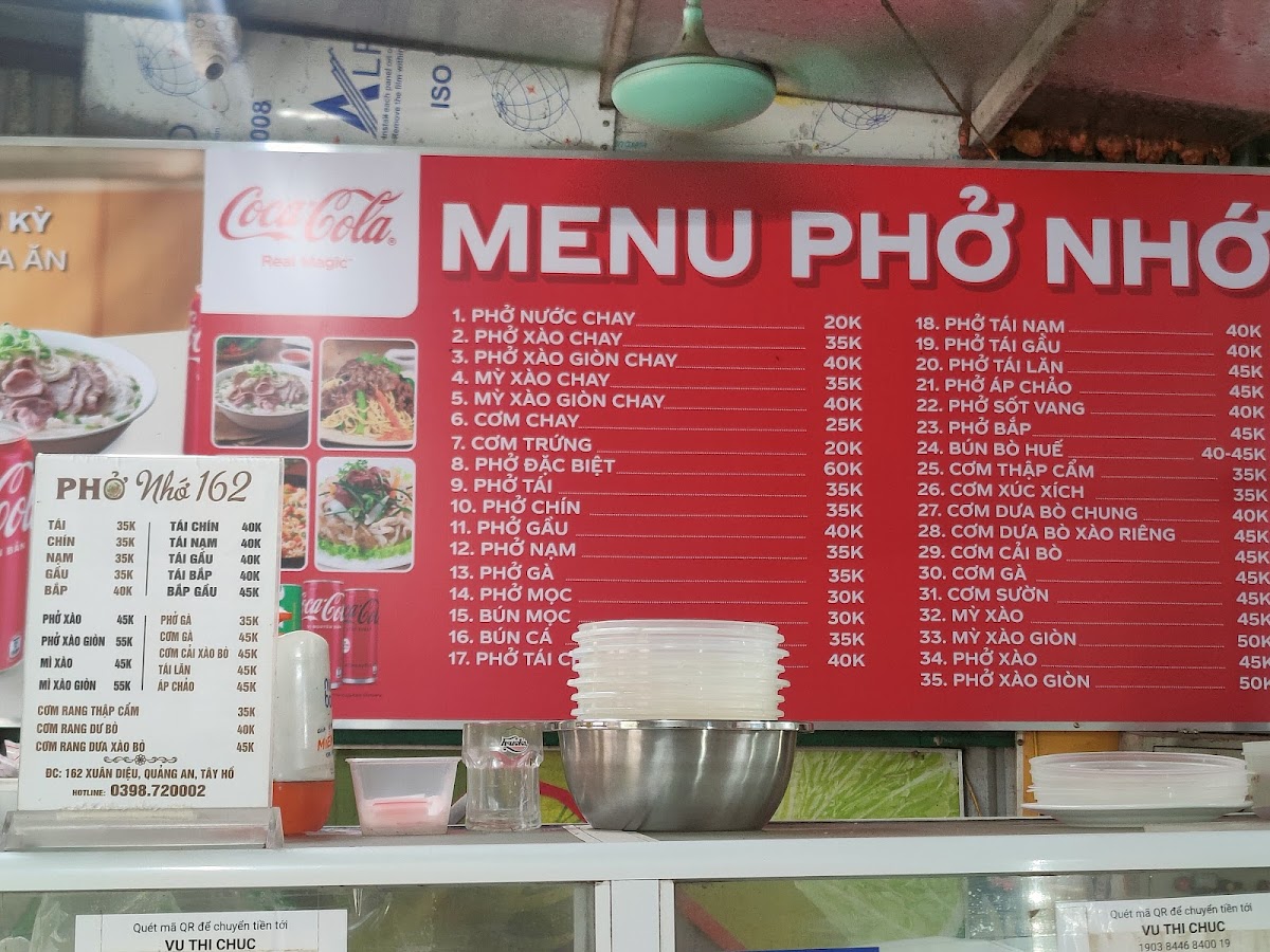 Welcome to Phở Nhớ -162 Xuân Diệu, a hidden gem nestled in the heart of Hà Nội at 162 Đ. Xuân Diệu. This local eatery is renowned for its remarkable pho, celebrated for its rich flavors, perfectly balanced noodles, and generous portions of tender meat. Customer reviews consistently highlight the quality of the dishes, with many remarking on the affordable prices that make this restaurant a staple for both locals and visitors alike.